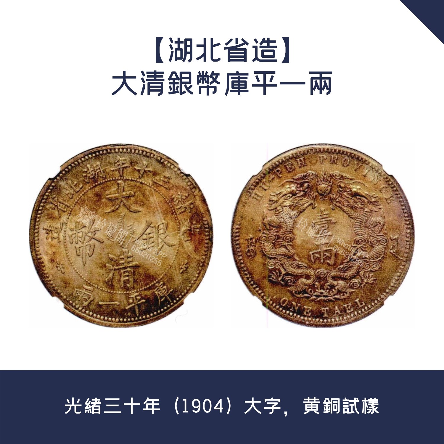 【湖北省造】大清銀幣庫平一兩 · 光緒三十年(1904)大字,黄銅試樣