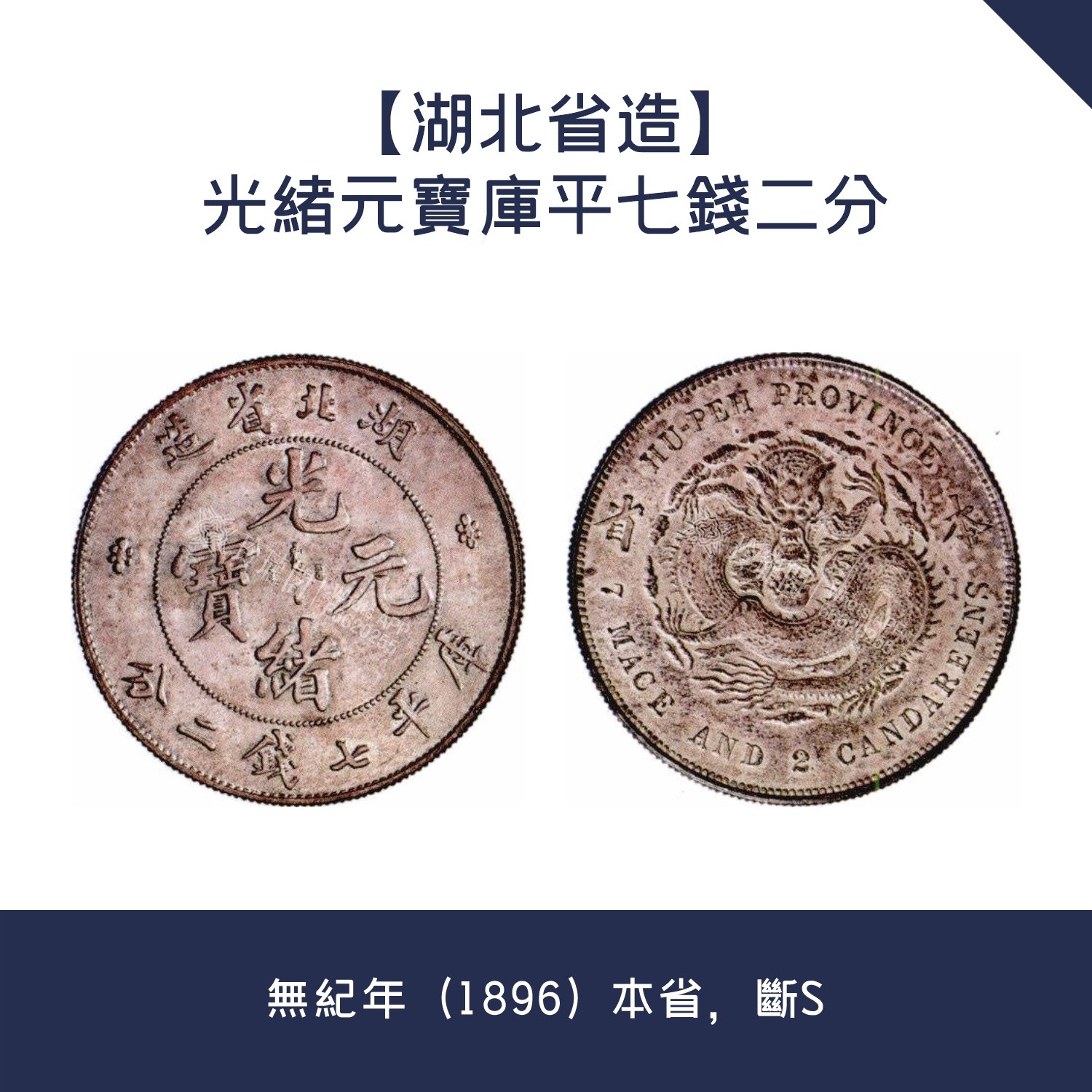 古幣鑒定【湖北省造】光緒元寶庫平七錢二分 · 無紀年(1896)本省,斷S
