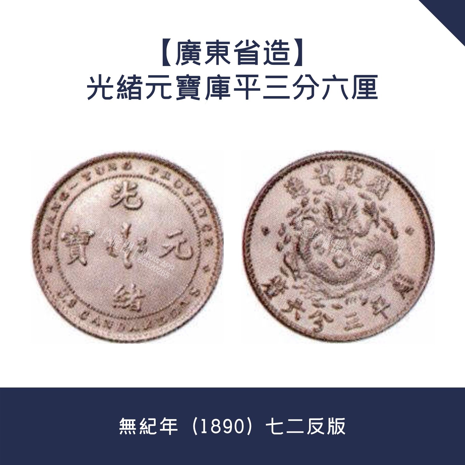 回收價值行情【廣東省造】光緒元寶庫平三分六厘 · 無紀年(1890)七二反版