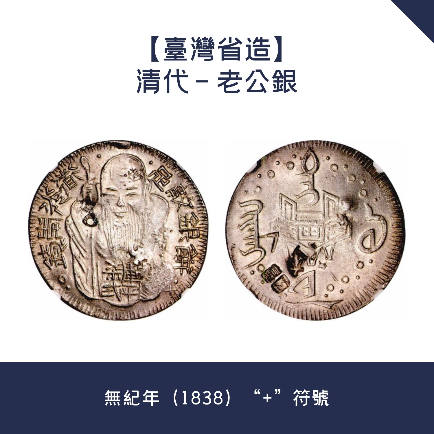 大量回收銀元【台灣省造】清代 – 老公銀 · 無紀年(1838)“+”符號