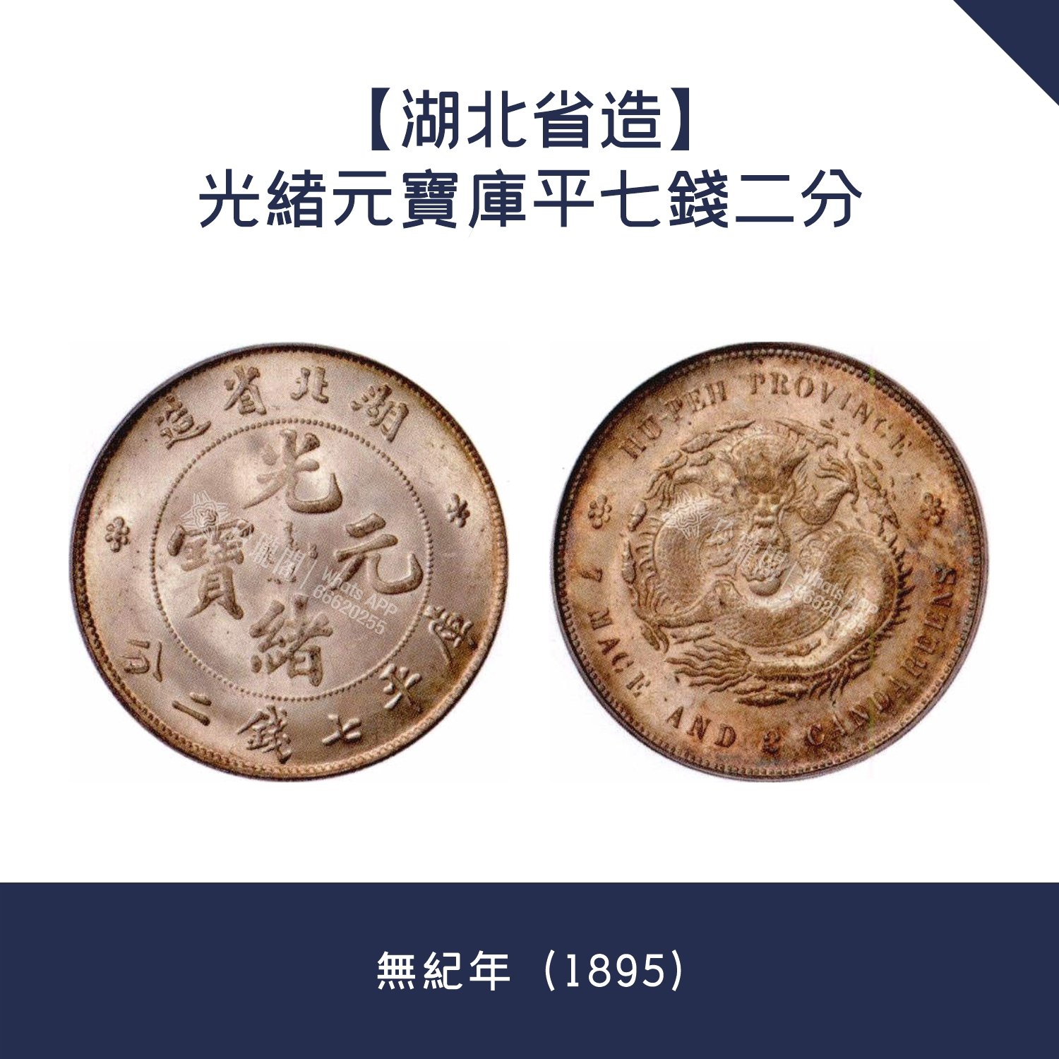 收購舊錢幣【湖北省造】光緒元寶庫平七錢二分 · 無紀年(1895)