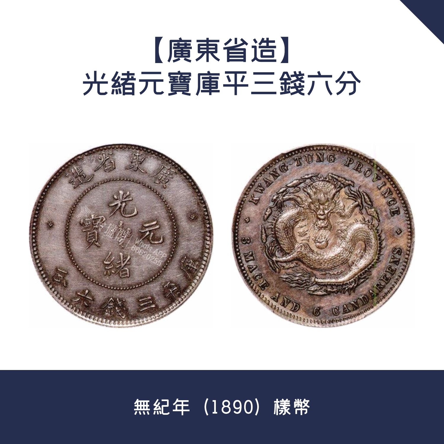 深水埗區回收【廣東省造】光緒元寶庫平三錢六分 · 無紀年(1890)樣幣