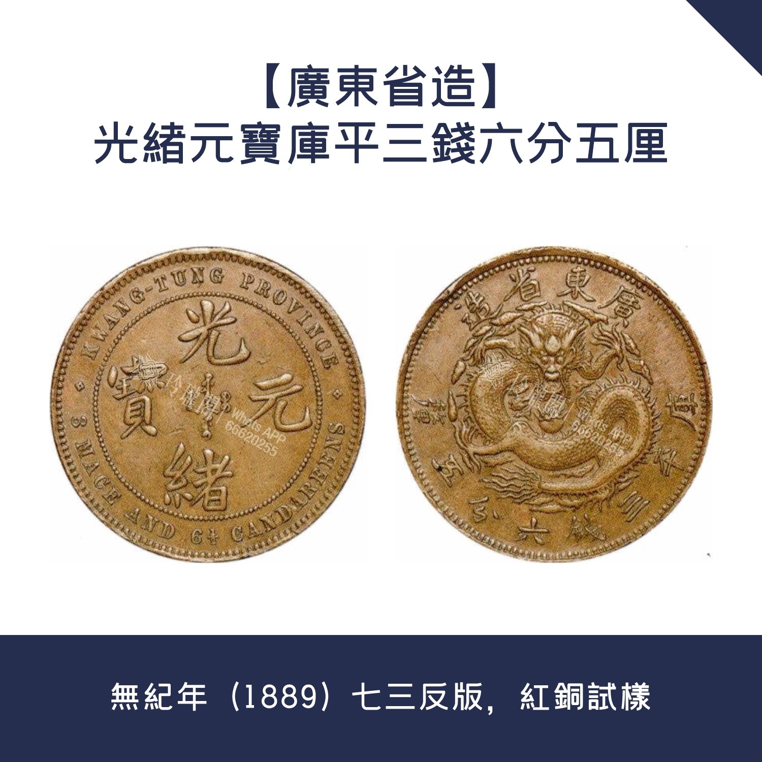 黃大仙區回收【廣東省造】光緒元寶庫平三錢六分五厘 · 無紀年(1889)七三反版,紅銅試樣